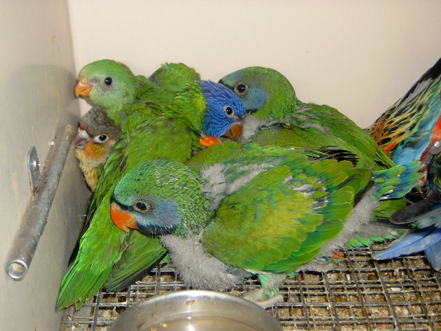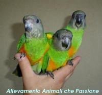 Descrizione: Piumaggio verde tendente al giallo sul ventre. La testa sfuma un bel rosso in rosa nella parte anteriore del capo e nel sottogola. La coda verde,con sfumature bluastre nella parte nascosta,mentre il sopracoda è azzurro. Il becco è carnicino-verdastro. L'iride è bruna e le zampe grigio brune. Essendo questa la specie più allevata è quindi maggiormente sottoposta a mutazioni. Il dimorfismo sessuale non è evidente. La taglia è cm.15. È diffuso nelle aree a sud ovest dell'Africa,le zone desertiche e le savane sono le predilette e ama molto l'acqua. Si alimenta di sementi di ogni genere,frutta,di bacche e di germogli. Studiosi hanno definito questa specie "devastatrice" per i raccolti di mais. In cattività è miscuglio di semi,pastoncino all'uovo,frutta e come integrazione sementi germinate. La loro riproduzione dura da Febbraio a Marzo. Nidifica molto volentieri in colonia,può costruire il nido nel cavo di un albero. La femmina depone normalmente 4 uova che cova 23 giorni. I piccoli,allevati da entrambi i genitori,escono dal nido dopo 43 giorni. In cattività è di facile riproduzione in coppia che in colonia. È necessario un nido a scatola.